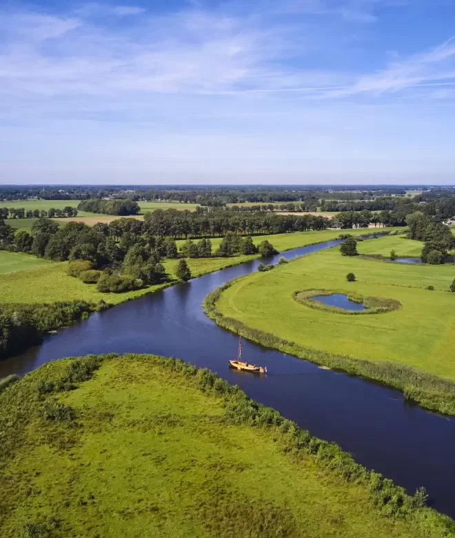 Quer durch das Vechtdal fließt die Overijsselse Vecht, die historische Verbindung zwischen den Städten Zwolle, Dalfsen, Ommen und Hardenberg. Dort, wo der Trubel der Stadt zu hören ist, ist es auf dem Wasser ach so still.