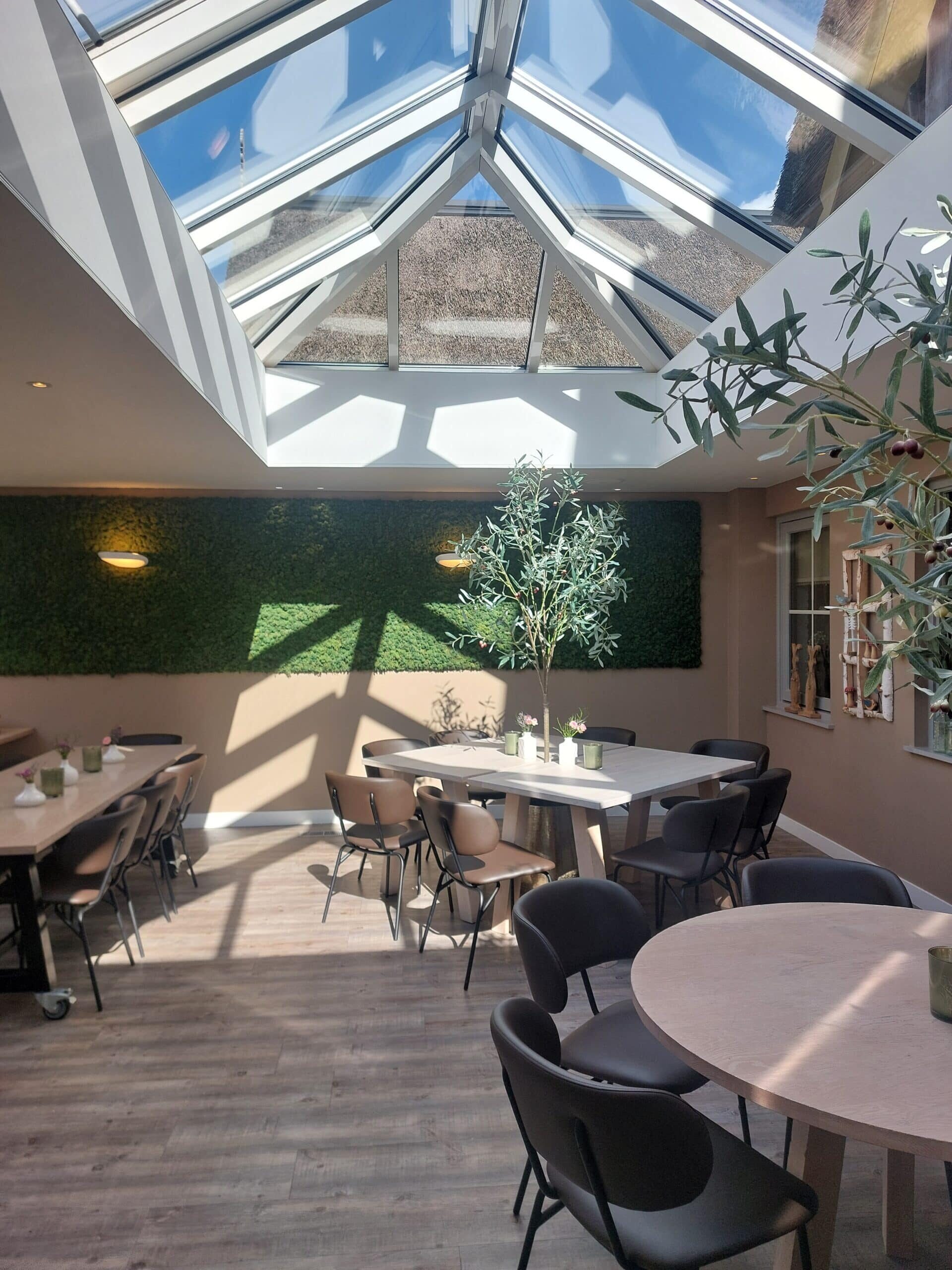 Deze ruimte wordt ook vaak gebruikt voor de lunch bij een vergadering in vergaderzalen boven.